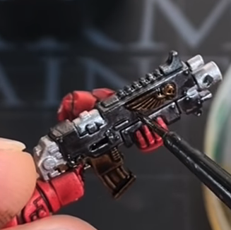 - Brush The Army Painter Claymore Blade over insignia and other metallic looking parts
