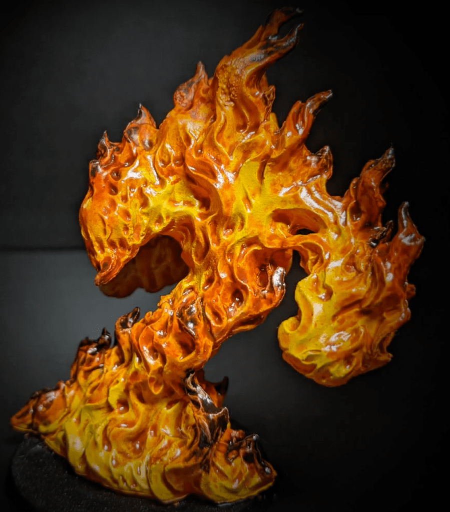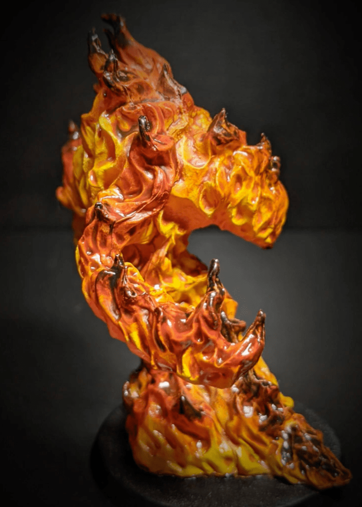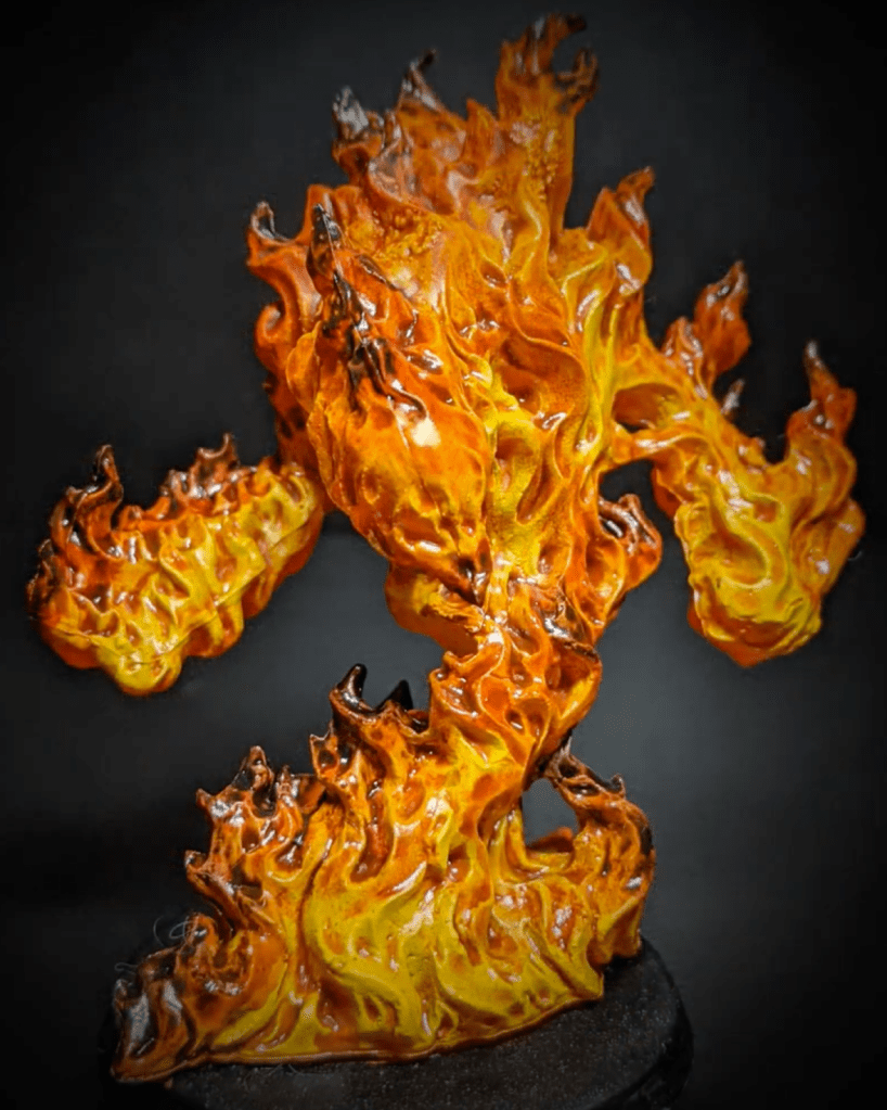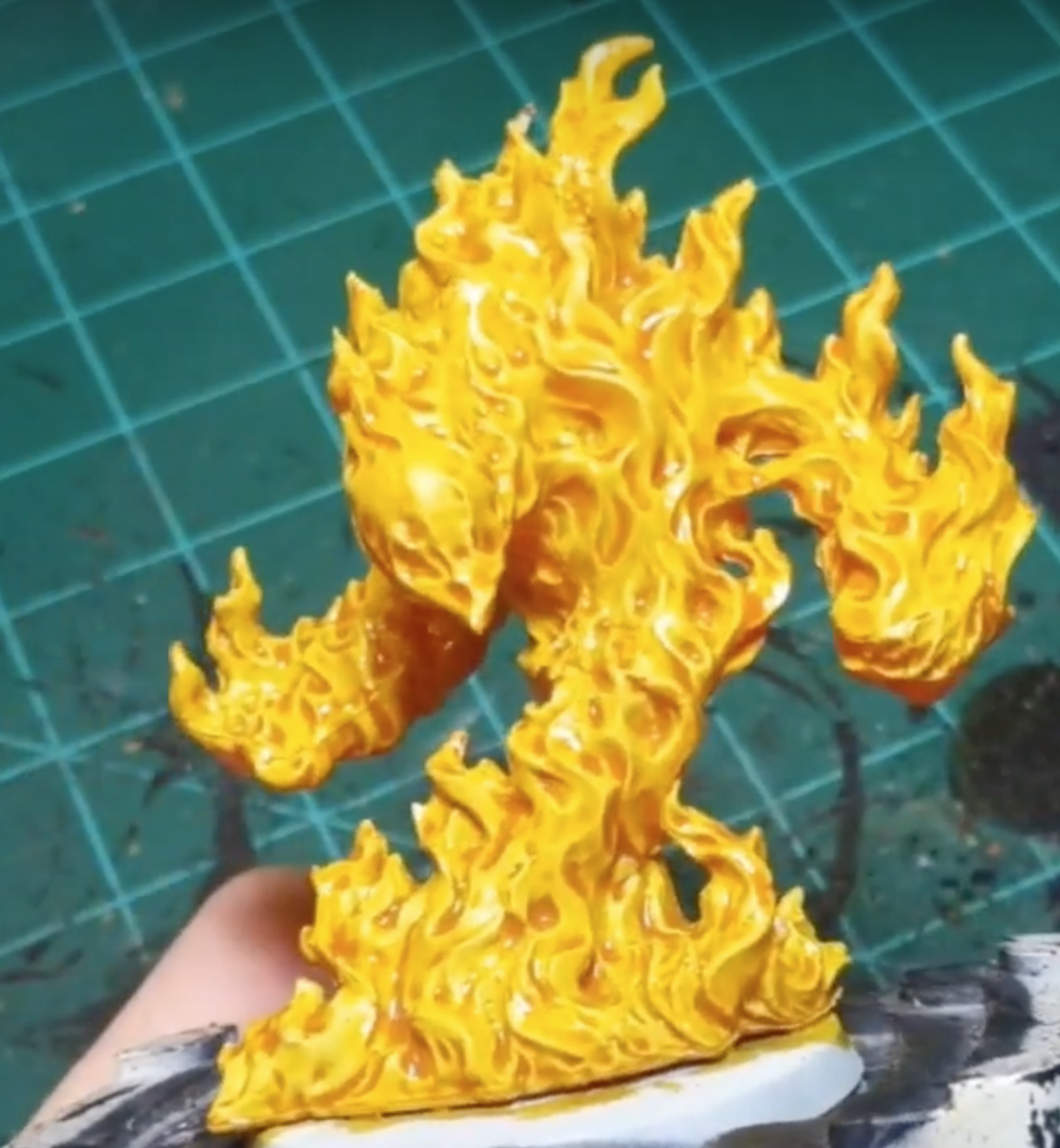 Please check out Galactic Hammer‘s original video, where he shows and describes in real-time how to paint his Fire Elemental. He did this as part of his live stream.