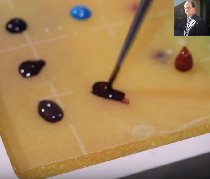 - When you’re going to add, always draw away from your latest source first, that way you can always go back to it (have an untainted source). This approach provides greater consistency and options. In the image below, Juan creates a second thicker pool of paint to work with as a basecoat for example purposes.