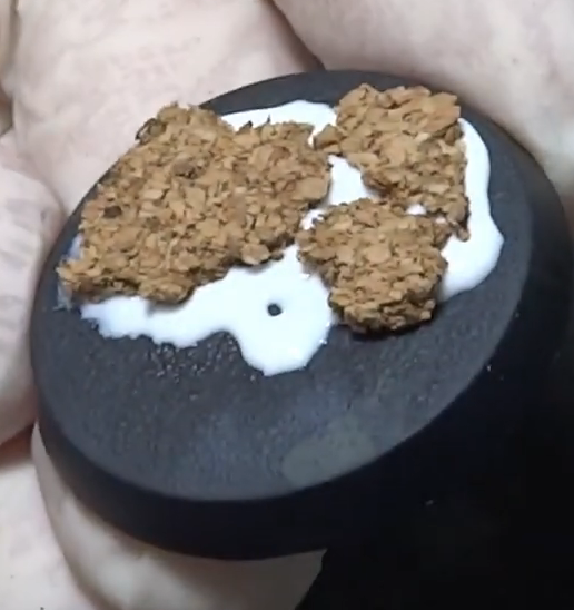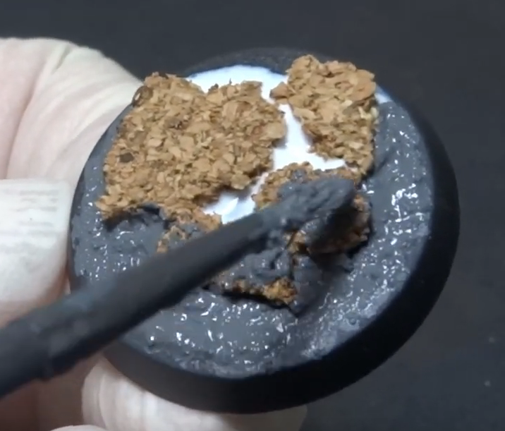 - [Brush] Citadel – Technical – Astrogranite texture paint over the base but not completely covering the cork