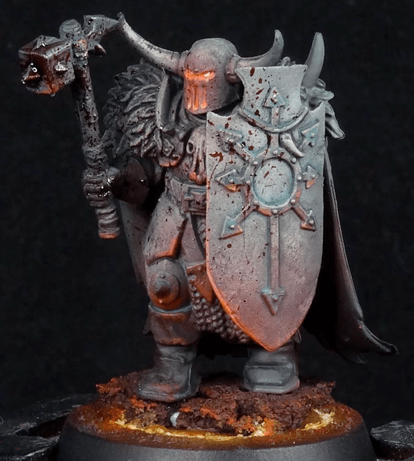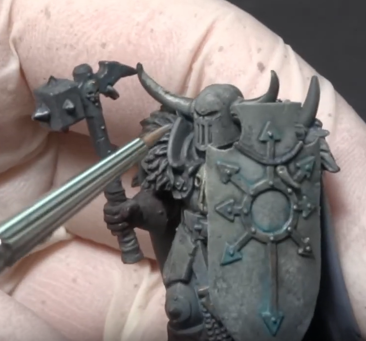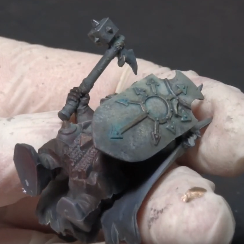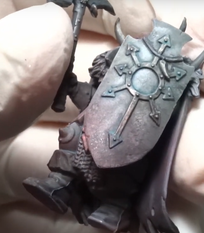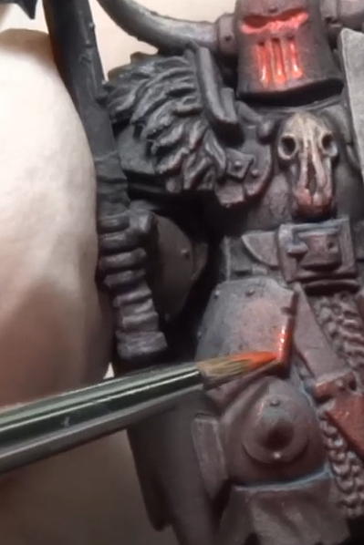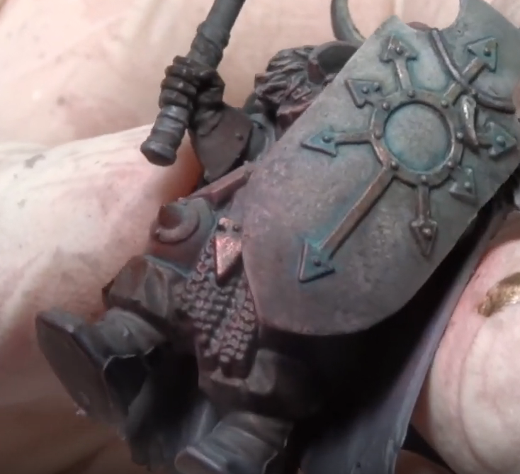 Please check out Gravehammer‘s original video, where he shows and describes in real-time how to paint his Chaos Warrior from scratch.