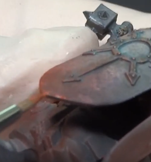 - [Airbrush] Spray Vallejo Red Ink onto the face. A quick light pass is sufficient