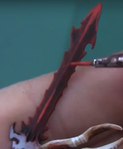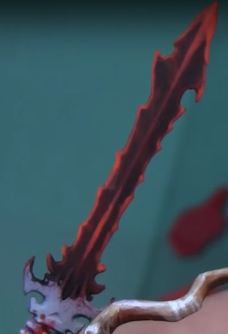 Brush the entire blade in Citadel – Evil Sunz Scarlet (multiple layers)
