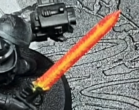 The goal is to have a glowing molten/forged look to the sword. The image below is the reference and the look Duncan is aiming for. A key feature on the model used is the “power node” on the blade which imbues the energetic properties. This node will be the source of the greatest heat. This sword will heavily rely on glazing to achieve the seamless blends/transitions.